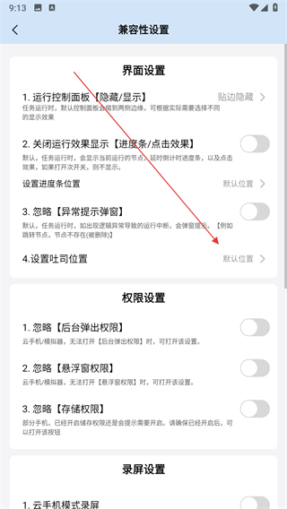 3、进入兼容性设置之后,在界面设置板块,点击设置吐司位置选项。