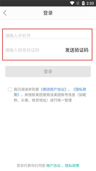 3、在登录界面依次输入手机号,点击发送验证码后输入收到的验证码。