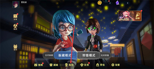 1、打开恐怖躲猫猫2,在主界面点击底部的角色选项。