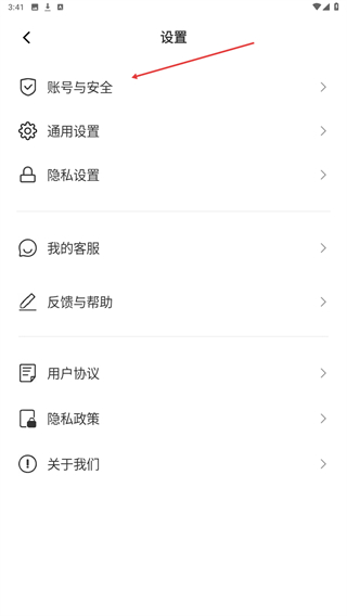 3、在设置页面里,点击账号与安全选项,进入账号管理界面。