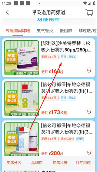 2、在药品列表页面,选择要购买的药品并点击进入详情页。