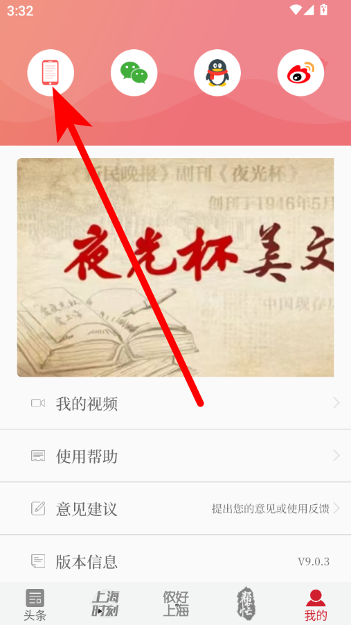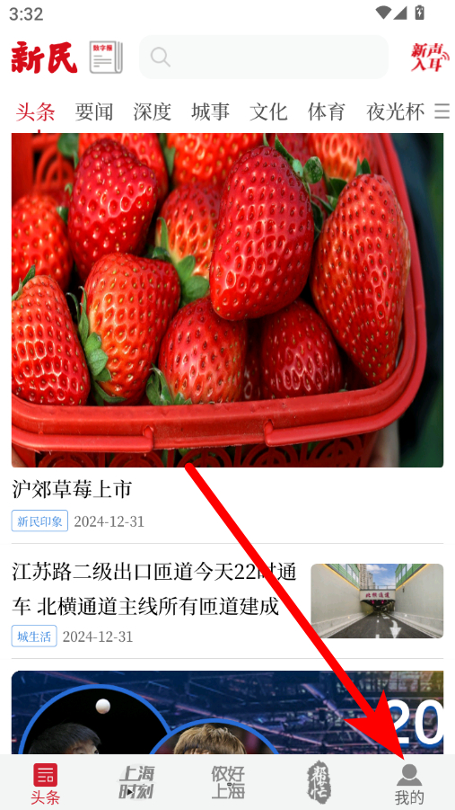 1、在新民晚报app首页,点击右下角我的选项,进入个人中心界面。