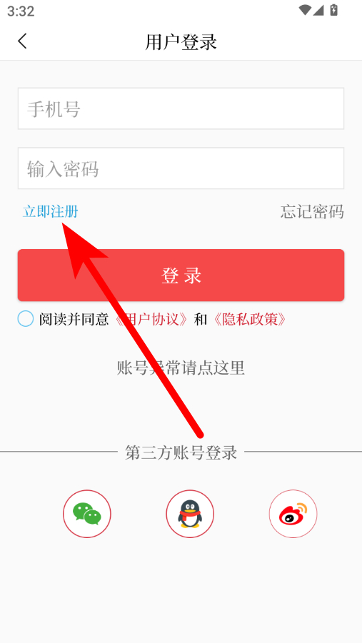 3、在用户登录界面,点击立即注册选项,进入用户注册页面。