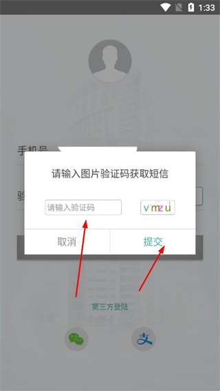 3、输入对应的图片验证码并点击提交,获取短信验证码后填写到验证码输入框。