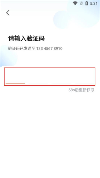 4、进入请输入验证码页面,在对应输入框中填写发送至该手机号的验证码。