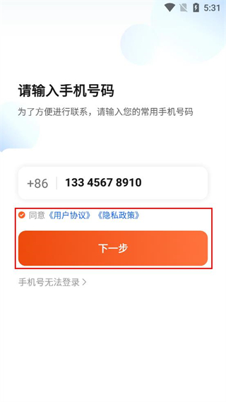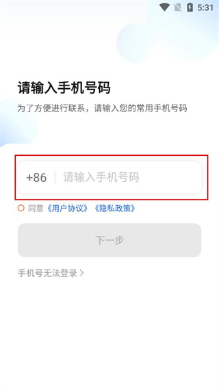 2、进入请输入手机号码页面,在对应输入框中填写常用的手机号码信息。