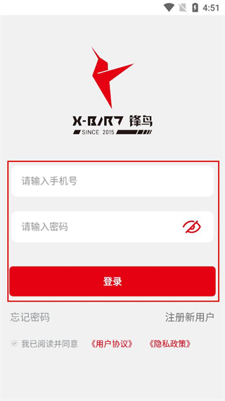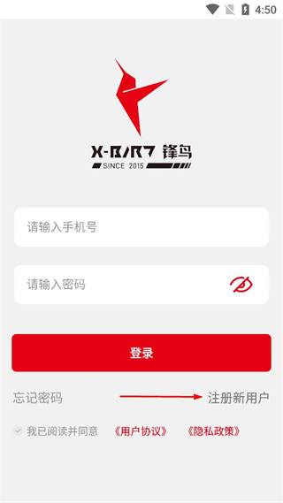 1、打开锋鸟APP,在登录界面找到注册新用户选项,点击该选项进入注册页面。