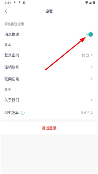 3、在设置页面中,找到消息推送对应的开关按钮,点击该按钮即可关闭消息推送提醒。