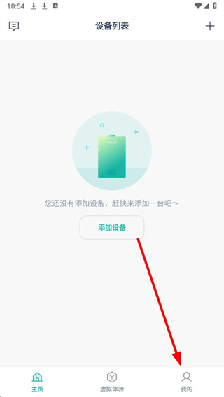 1、在林内智家app的设备列表页面,点击底部的我的选项,进入个人相关操作界面。