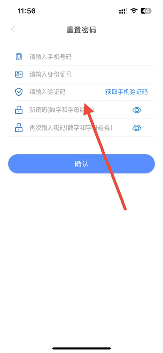 4、在重置密码页面,依次填写信息,获取验证码,设置新密码后点击确认完成重置。