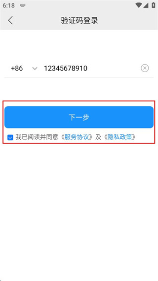4、确认手机号码填写正确且协议已勾选后,点击界面中的下一步按钮继续操作。