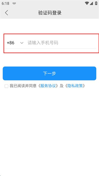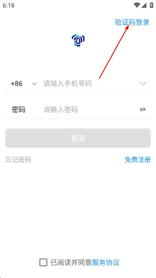 3、在验证码登录页面填写个人手机号码,勾选已阅读并同意相关协议的选项。