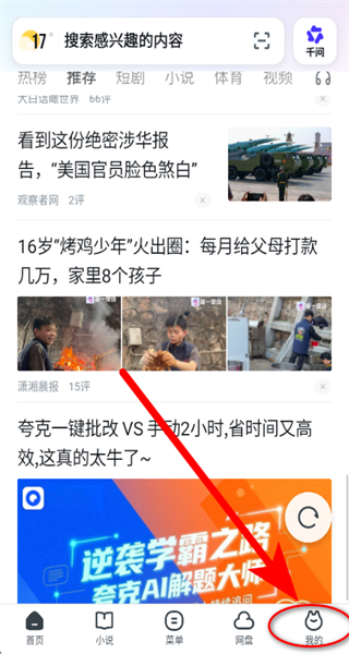 1、打开UC浏览器进入首页,点击底部导航栏最右侧我的选项,进入个人中心页面。