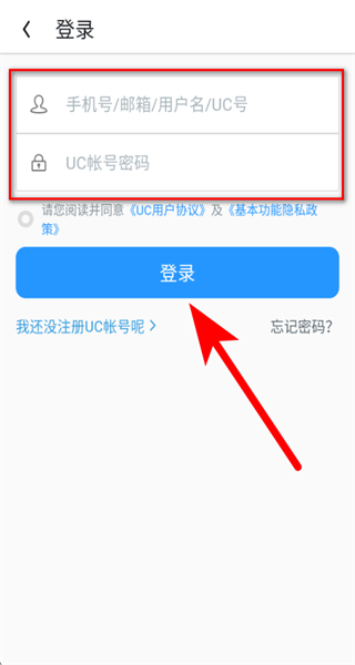 4、在登录页面填写账号与UC账号密码后,点击登录完成账号登录。