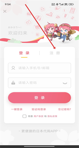3、登录选择页面点击“注册”,切换至注册界面。