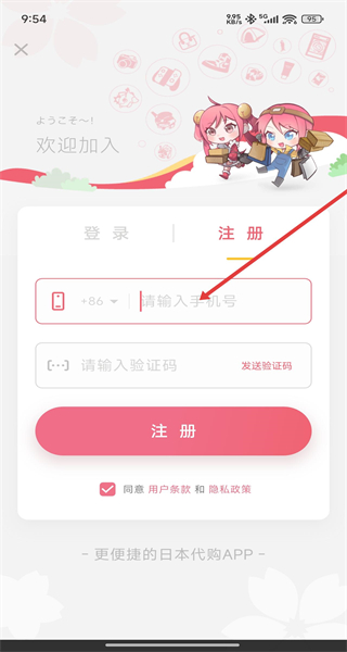 4、注册界面输入手机号,点击“发送验证码”,输入收到的验证码后点击“注册”,完成账号注册操作。