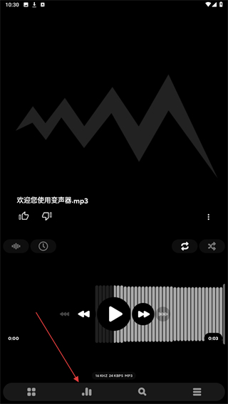 1、启动Poweramp,点击底部导航栏中间的音频图标,进入音频调节页面。