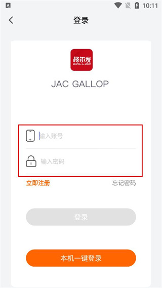 3、在登录界面依次点击输入账号和输入密码的输入框,填写对应信息。