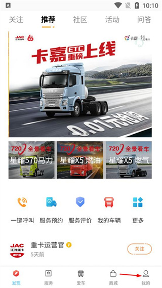 【发现】:带您全面了解卡嘉与其产品科技,和车友共同交流,不定期组织的线上线下组织活动让购车以后的生活更加丰富多彩,分享您在重型商用车的每个精彩瞬间。