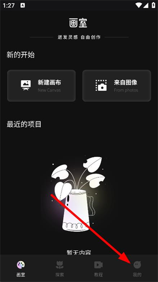 1、打开iArtbook,点击页面底部右侧的我的选项。