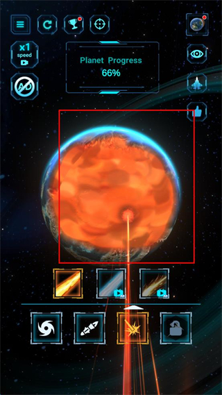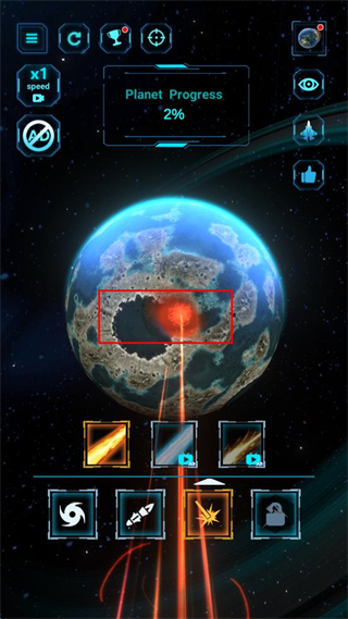 3、使用高能射线照射星球的目标区域,推进星球改造的进度数值。