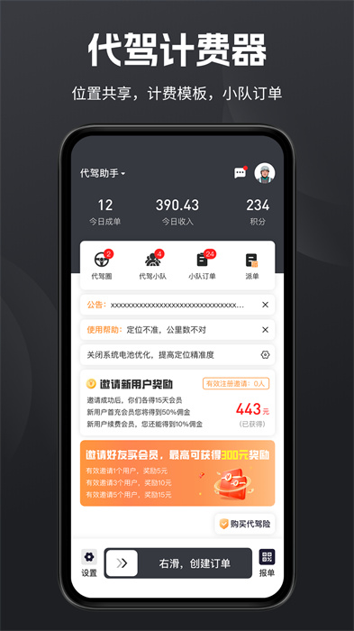 代驾助手2是代驾行业标准计价器。为你提供百万级代驾责任险,代驾工作安全无忧。涵盖市面三大主流计价器供您自由选择。代驾助手2立志打破代驾公司暴利坚冰,拒绝缴纳高额订单分成,自己辛苦守单为自己,赶快加入我们吧!