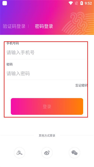 3、在登录页面填写手机号码和密码,点击登录。