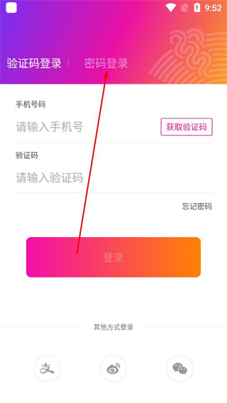 2、在个人中心页面选择登录方式,切换到对应登录页面。