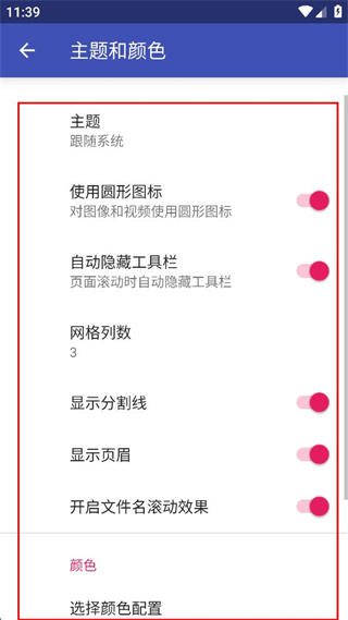 2、在设置页面中,选择主题和颜色选项,进入对应的自定义配置界面。