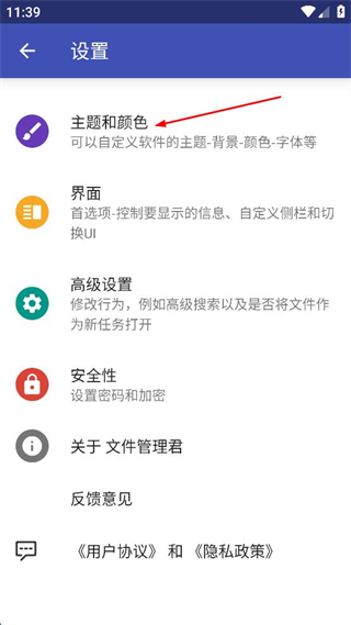 1、打开文件管理君应用,在主界面找到设置选项并点击,进入设置页面。