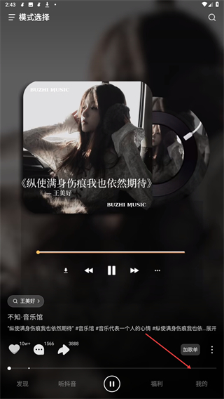 1、打开抖音音乐App,在首页导航栏点击我的按钮。