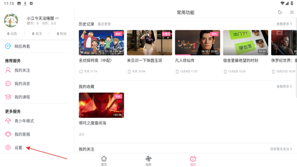 2、进入我的页面内,在左侧找到并点击设置选项,进入设置页面。