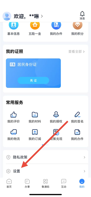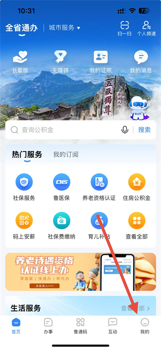 1、在爱山东app界面,点击我的选项,进入个人相关操作页面。