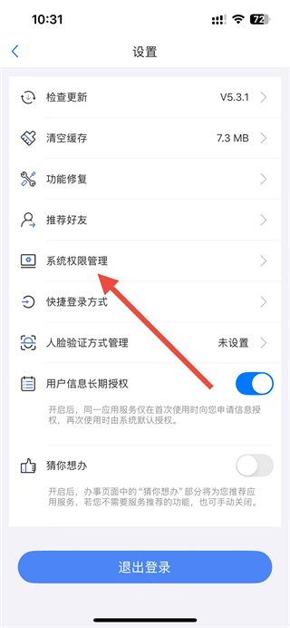 3、在设置页面中,找到系统权限管理选项并点击,进入对应的权限配置界面。