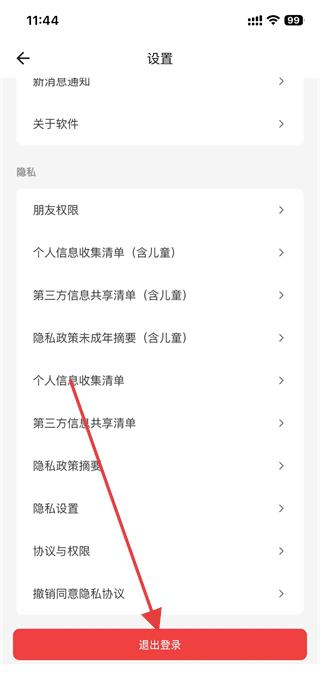 3、在设置页面中,点击退出登录,即可完成退出登录。