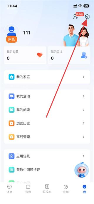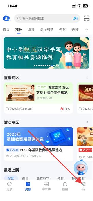 1、打开智慧中小学APP,点击底部导航栏右侧的我选项。