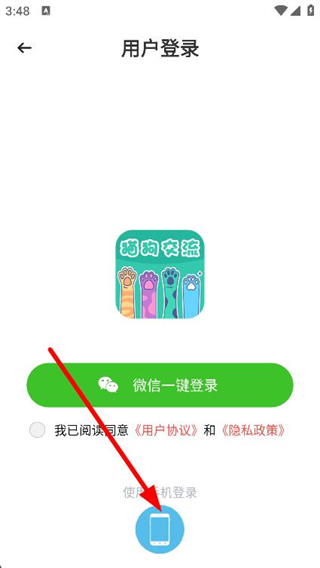3、在用户登录页面,找到并点击下方的手机登录选项。