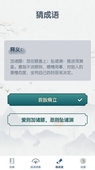 神笔连成语app是给用户提供成语知识学习的软件,里面有很多的成语锦集,您可以在平台上查看成语的解释,让您能够更好的学习,界面简洁明了,操作也是十分的简单好用,需要学习成语的伙伴们快来下载吧。