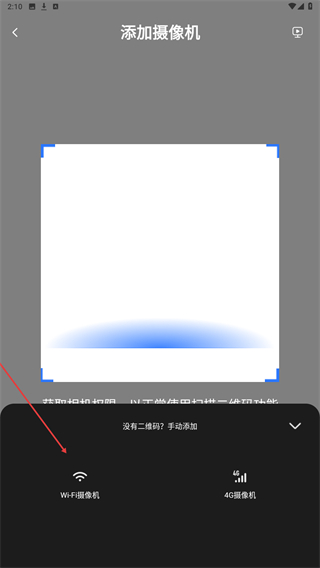 2、进入添加摄像机的页面内,点击下方手动添加的按钮。