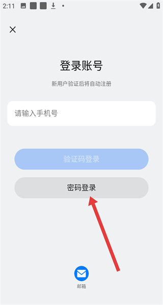 2、在进入到登录页面中时,点击密码登录按钮,切换为使用密码方式登录游戏。