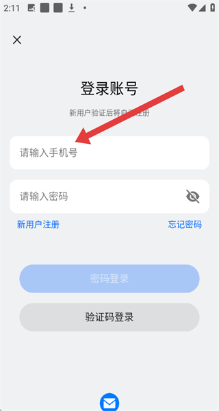 3、在切换到密码登录界面,点击输入框输入手机号,填写密码。