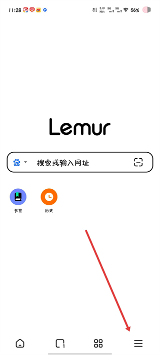 1、打开狐猴浏览器,点击右下角的三条横线图标。