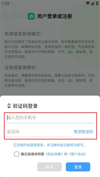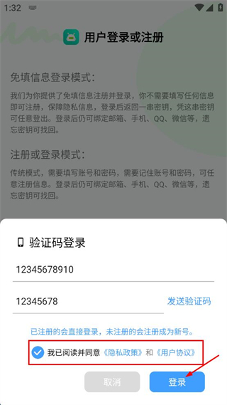 4、勾选已阅读并同意相关协议的选项,点击登录按钮完成账号登录操作。