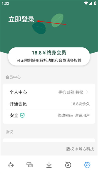 2、在该页面点击立即登录选项,进入用户登录或注册的操作界面。