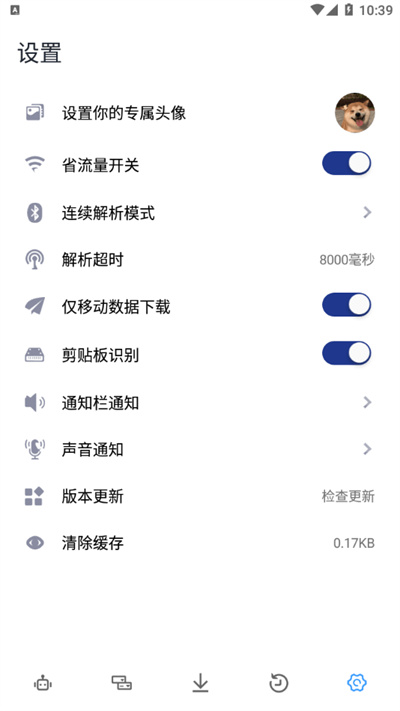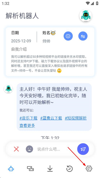 1、打开解析机器人应用,点击界面底部的设置图标,进入对应的功能页面。