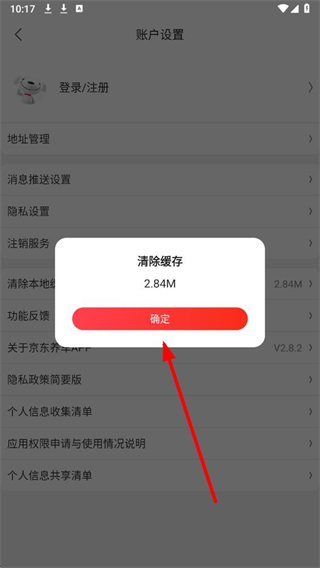 3、在账户设置页面中,找到清除本地缓存选项,点击该选项触发清除缓存的确认弹窗。
