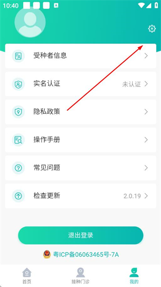 3、我的板块可管理受种者信息,进行实名认证,查看隐私政策、操作手册,咨询常见问题,还可检查APP更新。