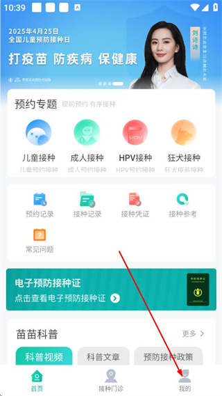 1、在粤苗App首页点击底部的我的,进入个人中心页面。
