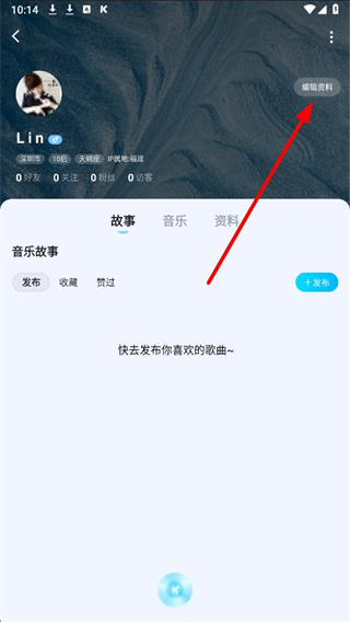3、在个人资料页面中,找到右上角的编辑资料按钮并点击,进入编辑资料页面。