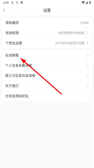 3、在设置界面中,找到在线客服选项并点击,即可进入与客服的咨询界面。